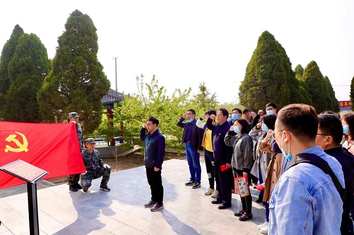 在莊嚴(yán)肅穆的高蠡暴動(dòng)紀(jì)念塔前,全體黨員干部面向黨旗重溫入黨誓詞。黨員們舉起右手、緊握拳頭,以最洪亮的聲音,錚錚的誓詞,表達(dá)了同志們對(duì)革命先烈的誠(chéng)摯敬意和對(duì)黨無(wú)限忠誠(chéng)的決心。大家瞻仰紀(jì)念碑,緬懷革命先烈,被那場(chǎng)聞名華北、影響全國(guó)的英雄事跡深深震撼。