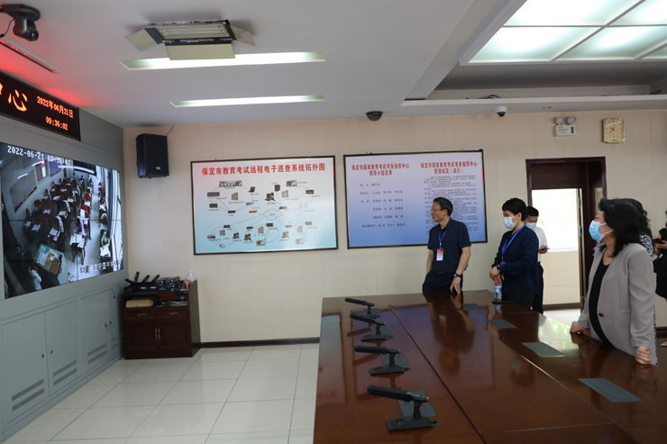 在市教育考試院考試指揮中心,姬書記通過考試指揮巡查平臺,隨機(jī)抽點(diǎn)查看主城區(qū)和各縣(市、區(qū))中考考場實(shí)時(shí)監(jiān)控畫面,仔細(xì)詢問中考網(wǎng)上視頻巡查系統(tǒng)運(yùn)行、考點(diǎn)布置、考場設(shè)置、考務(wù)人員履職等情況。在保定市第十七中考點(diǎn),姬書記認(rèn)真檢查考場環(huán)境、考試指揮中心,詳細(xì)了解疫情防控、考務(wù)實(shí)施、安全保障、應(yīng)急處理等工作開展情況。