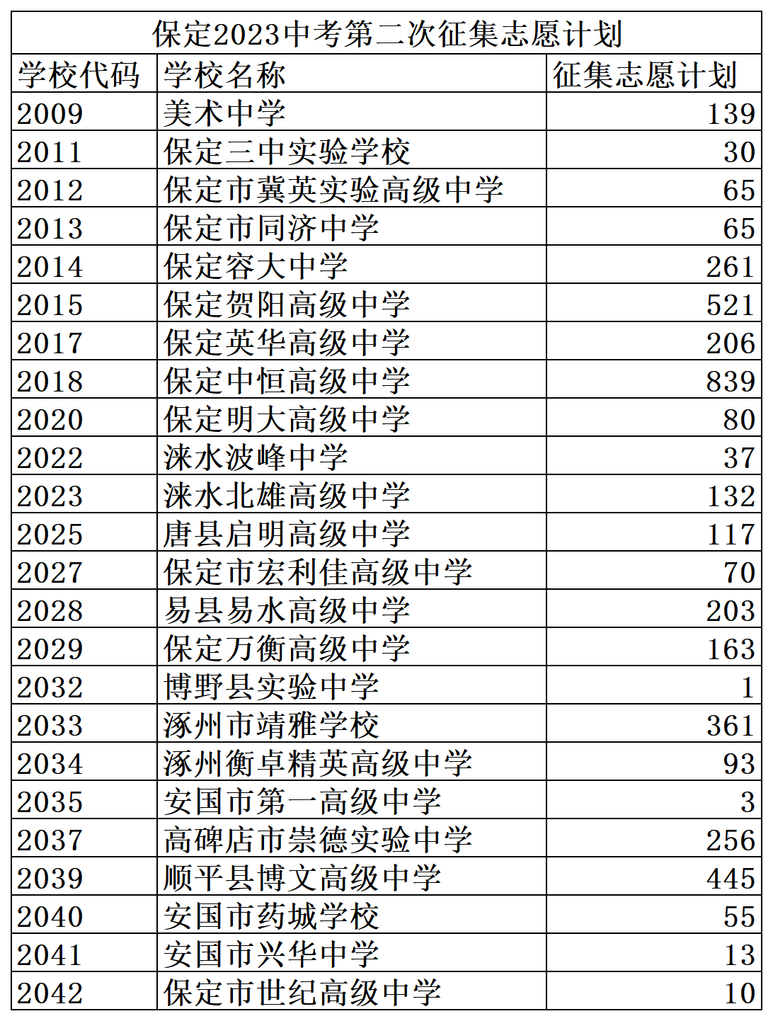附件:2023年保定市中考第二次志愿征集計(jì)劃