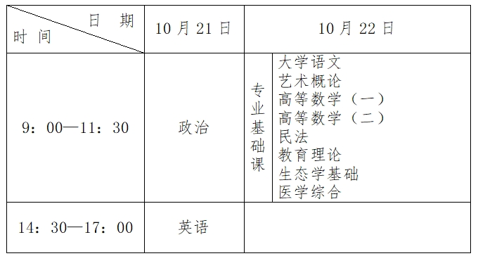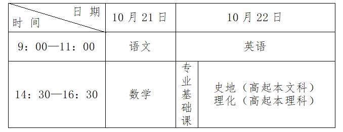(一)高中起點(diǎn)升本、專科考試時(shí)間表
