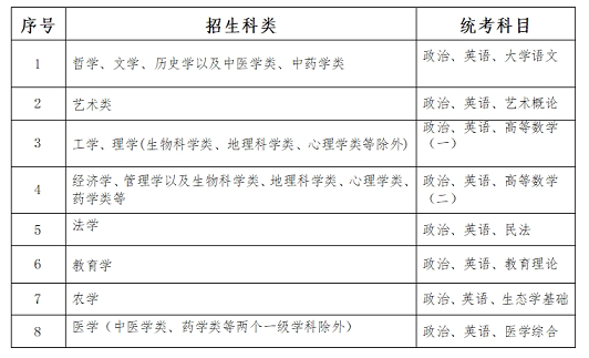 二、專升本招生科類與統(tǒng)一考試科目對(duì)照表