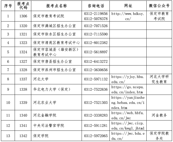 二、保定市各報考點咨詢電話、網(wǎng)址、微信公眾號