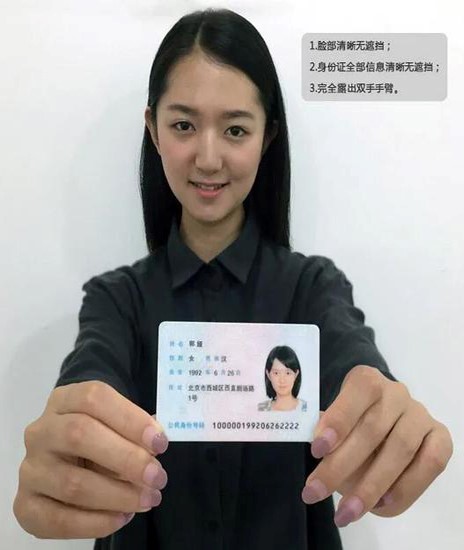 (3)確保身份證上的所有信息清晰可見、完整(沒有被遮擋或者被手指捏住);
