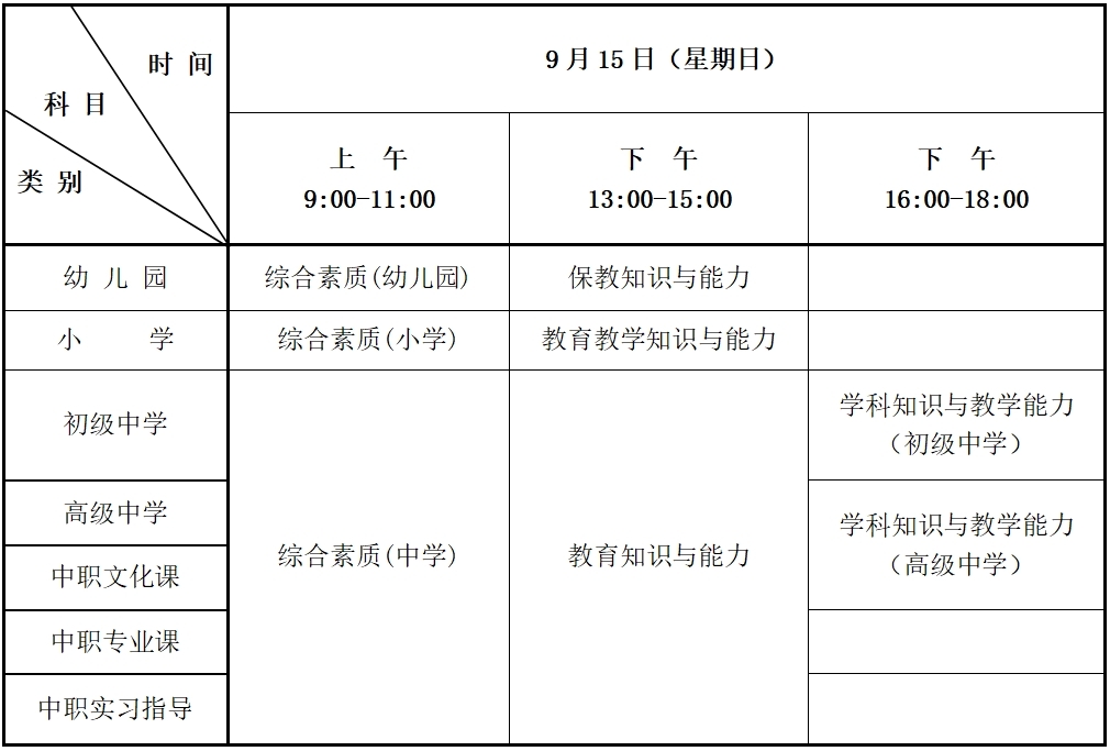 (七)根據《教育部教師工作司關于中小學教師資格考試增加“心理健康教育”等學科的通知》(教師司函〔2017〕41號)文件要求,中小學教師資格考試初中、高中、中職文化課類別面試已增設“心理健康教育”“日語”“俄語”學科,以上三個學科的筆試科目三《學科知識與教學能力》結合面試一并考核;小學類別面試增設“心理健康教育”“信息技術”“小學全科”學科。請有意報考上述學科教師資格證的考生在筆試報考時選擇相應的公共科目(201、202或301、302)。
