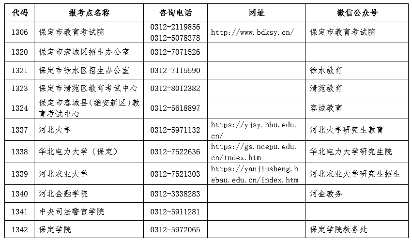 三、保定市各報(bào)考點(diǎn)咨詢電話、網(wǎng)址、微信公眾號