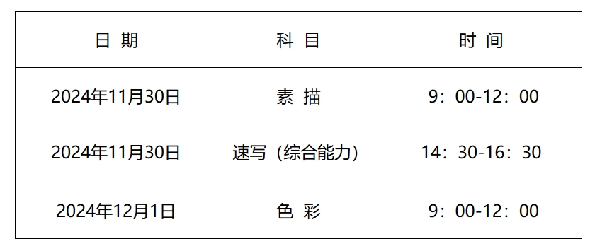 考試時(shí)間:2024年12月1日9:00-12:00。其中,書法臨摹科目考試時(shí)間為9:00-10:30,書法創(chuàng)作科目考試時(shí)間為10:30-12:00。