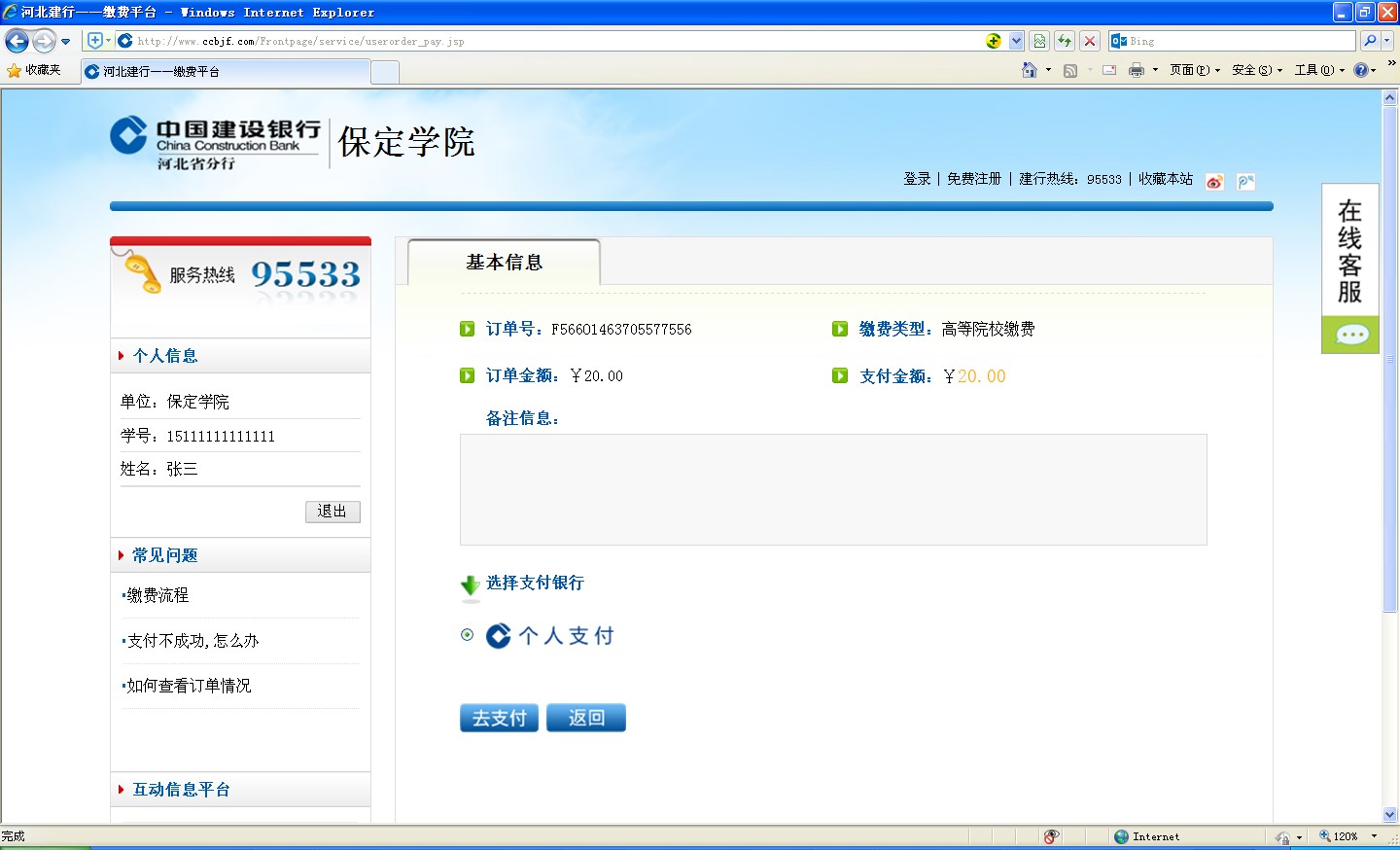 河北建設(shè)銀行繳費(fèi)平臺(tái)使用說明