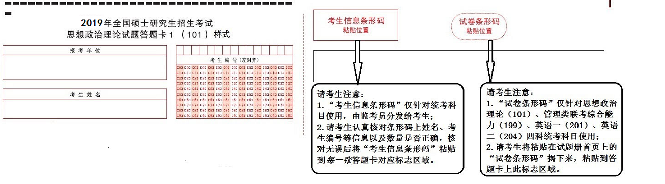 (1)“試卷條形碼”僅針對思想政治理論(101)、管理類聯(lián)考綜合能力(199)、英語一(201)、英語二(204)四科統(tǒng)考科目使用;